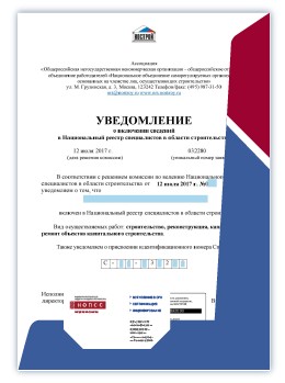 Организацией «НОПСС» были бесплатно подготовлены все необходимые документы и сертификация ИСО 9001. Заказчик получил всю необходимую консультацию и оперативно вступил в СРО за 1 день.